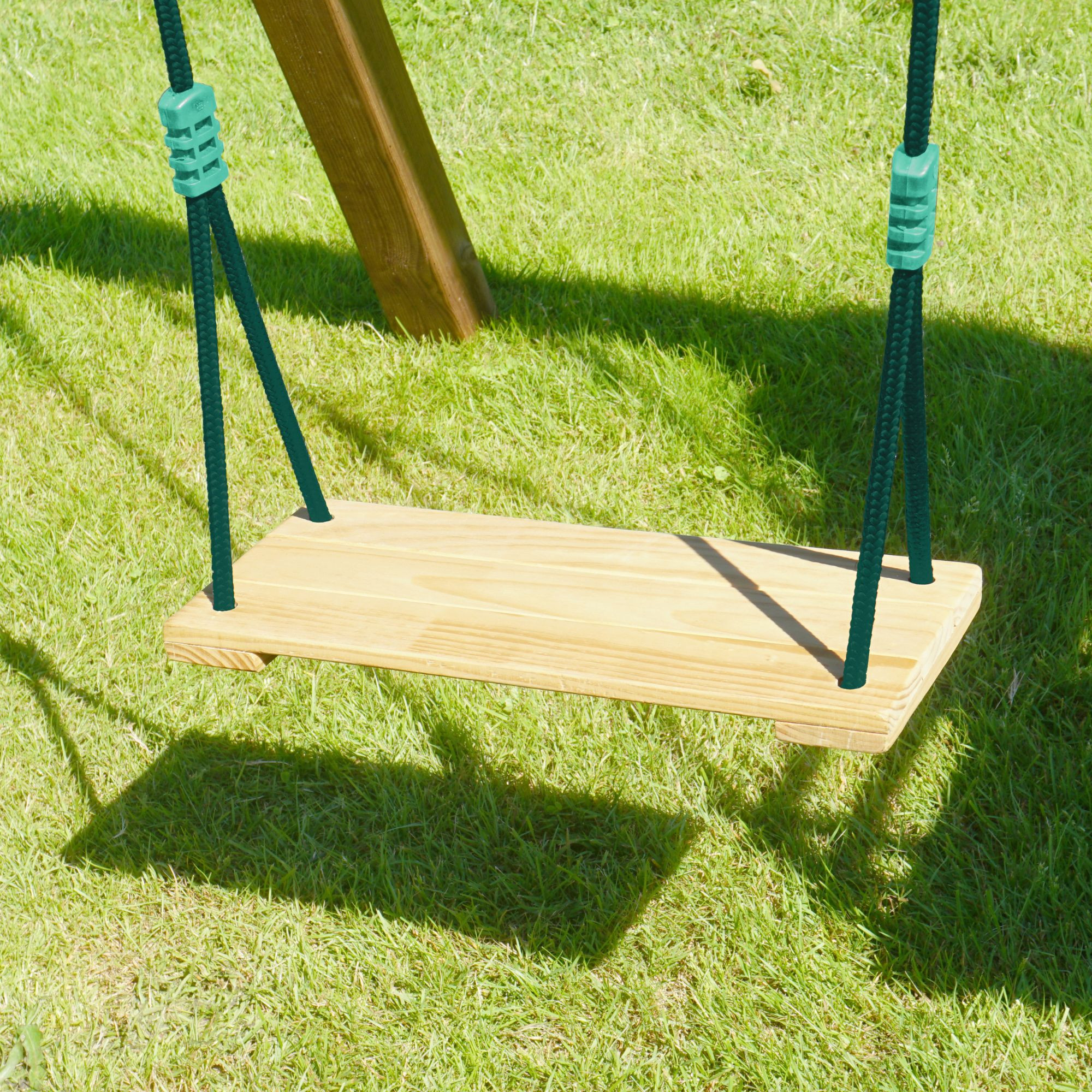 Balançoire en bois une place et cordes vertes – Agrès pour portiques 1m95 à 2m35