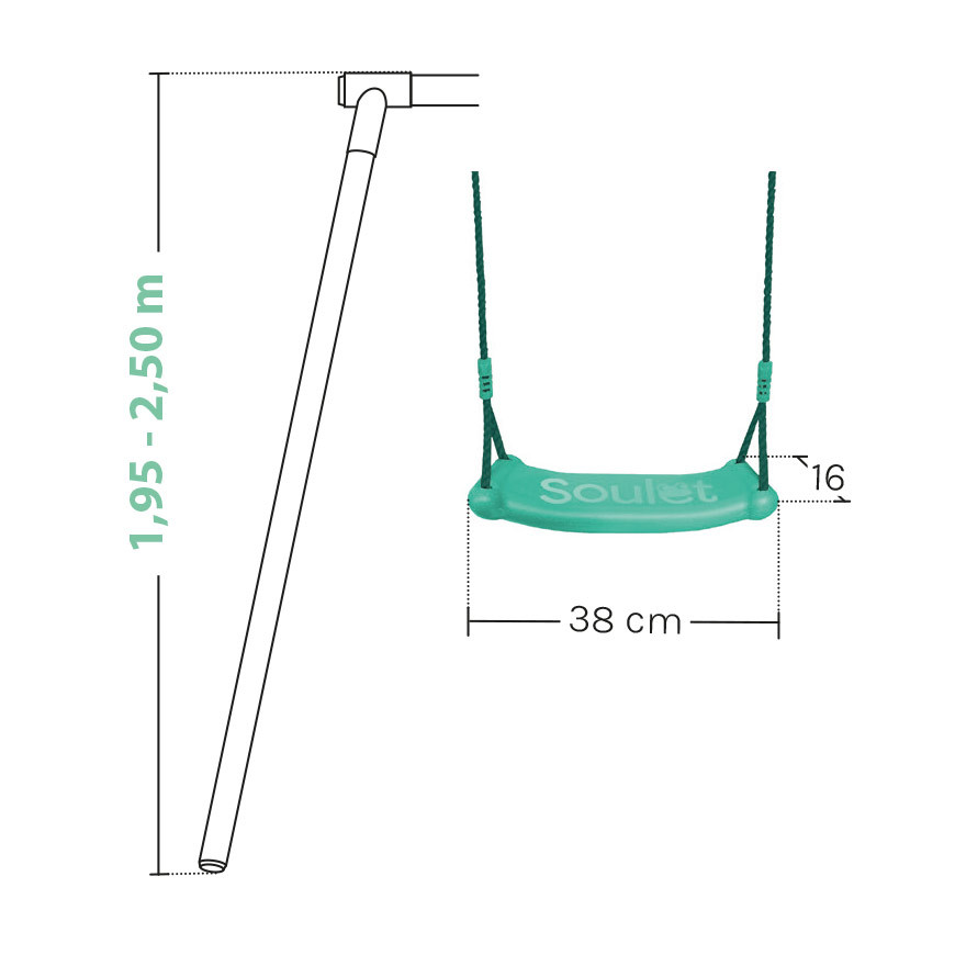 Compatibilité : Cet agrès s’adapte uniquement aux portiques en bois d’une hauteur comprise entre 1,95m et 2,50 m. Les portiques en bois Soulet sont déjà équipés de crochets mousquetons. Si vous possédez un portique d’une autre marque, assurez-vous que des mousquetons sont présents, car ils ne sont pas inclus.