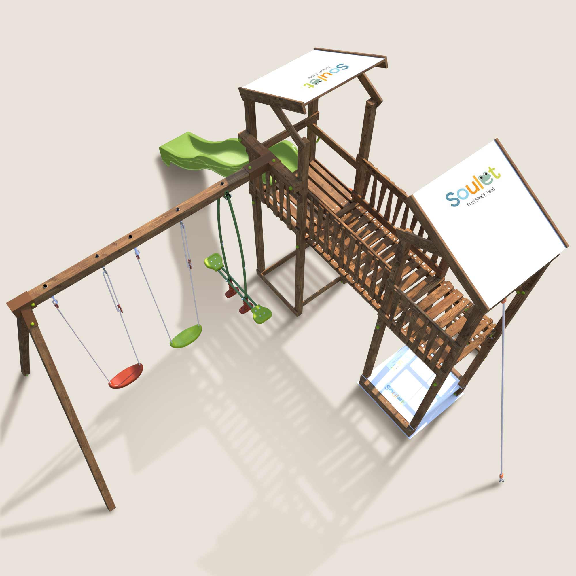 • Aire de jeux pour enfant 2 tours avec pont et portique - FUNNY Swing & Bridge 150 - Marque Soulet