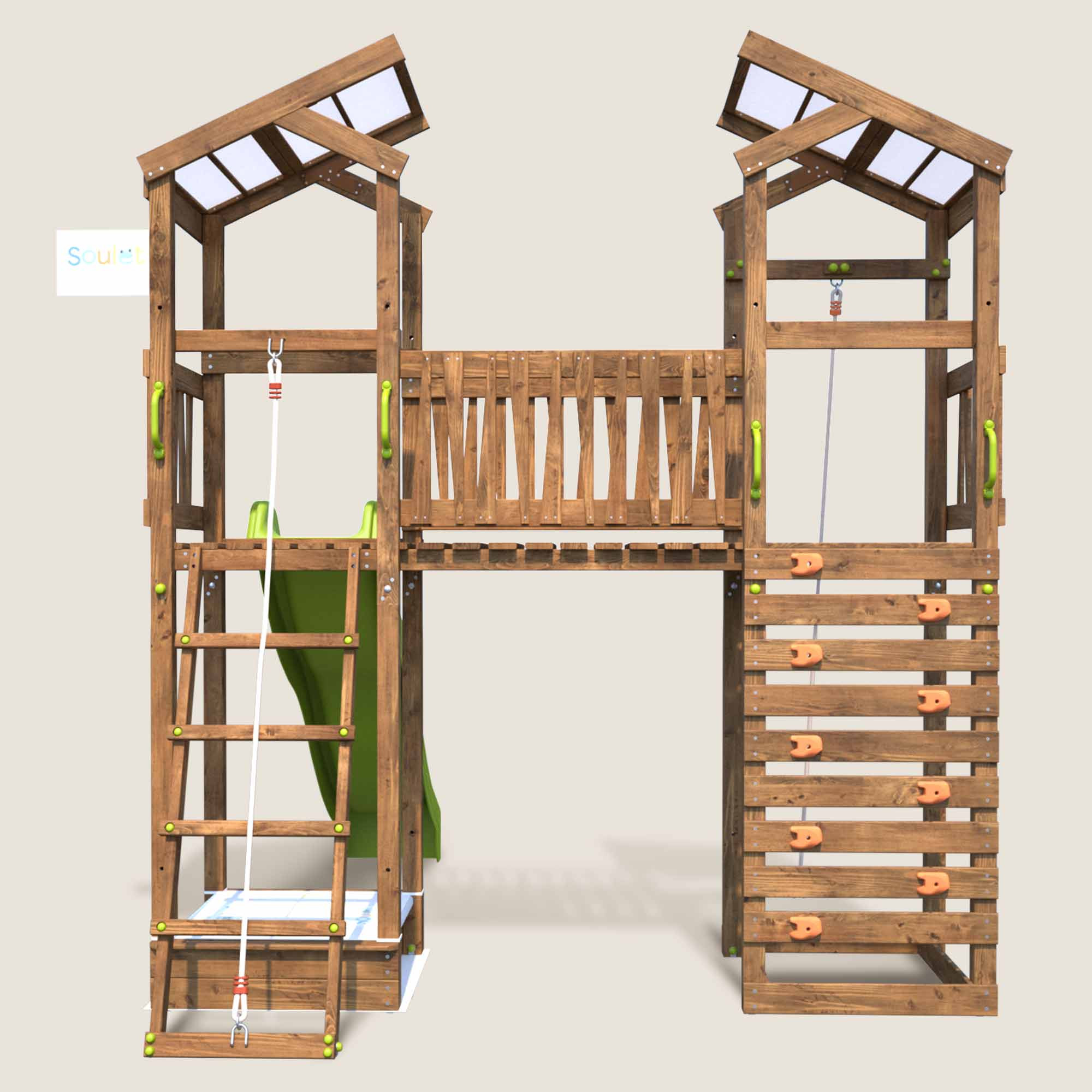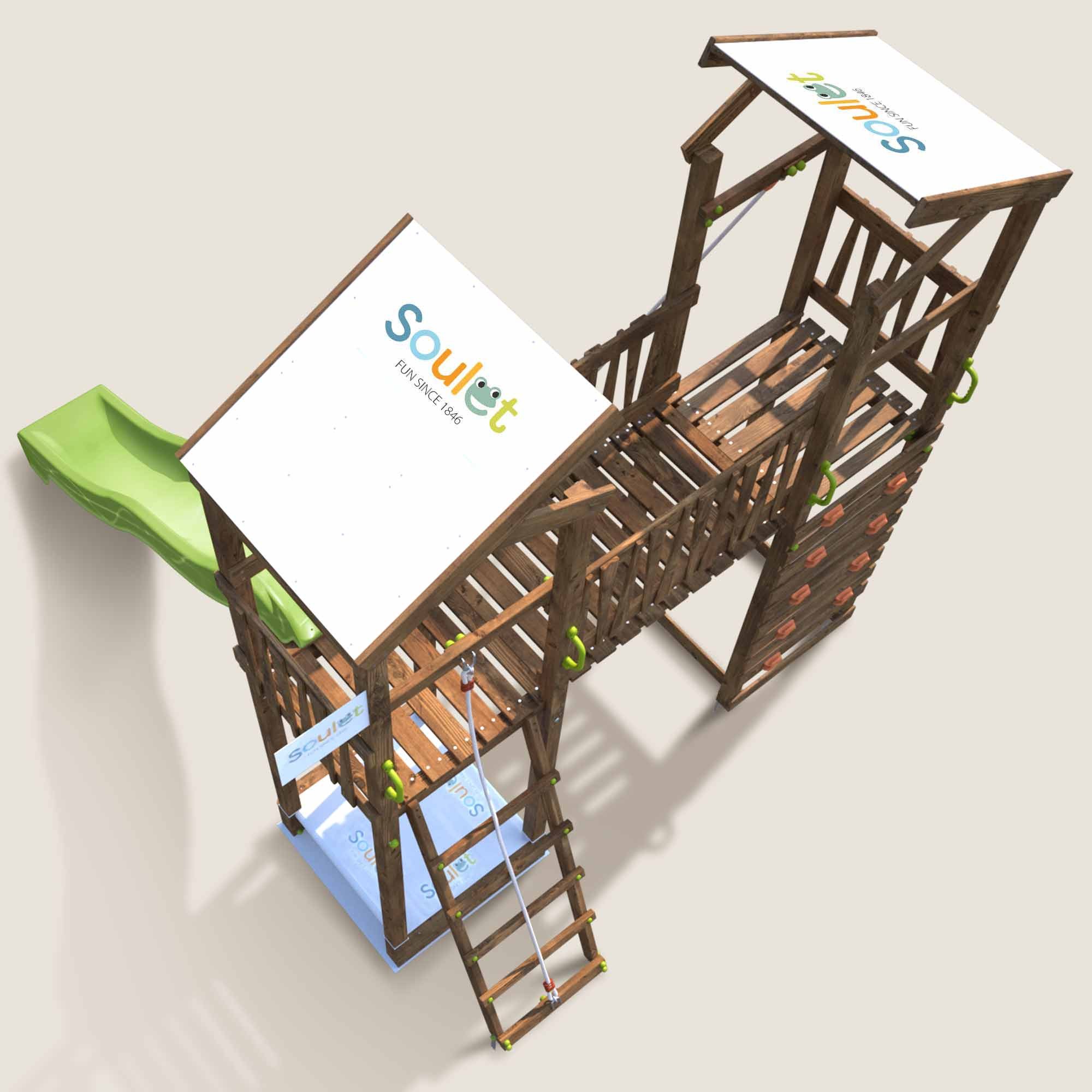 • Aire de jeux 2 tours avec pont et toboggan - FUNNY Bridge - Marque Soulet