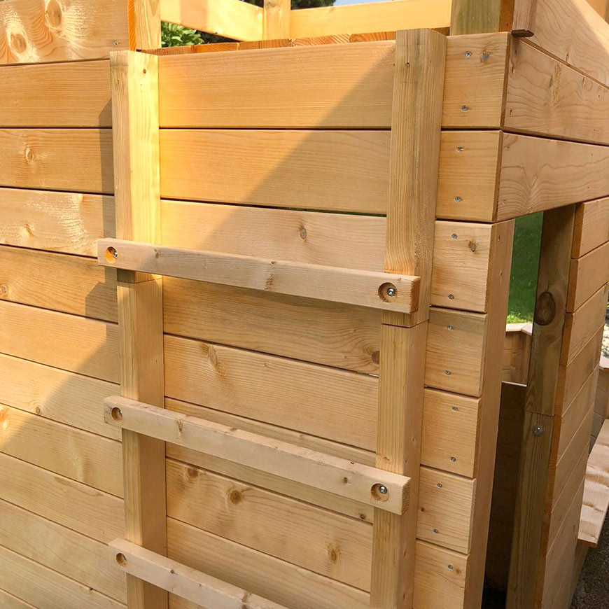 Pour assurer la sécurité des joueurs, la plateforme-terrasse, située à 158 cm de hauteur, est protégée par une rambarde en bois solide. Ainsi, les enfants peuvent s'amuser en toute sécurité, même lorsqu'ils jouent sur la terrasse en hauteur.