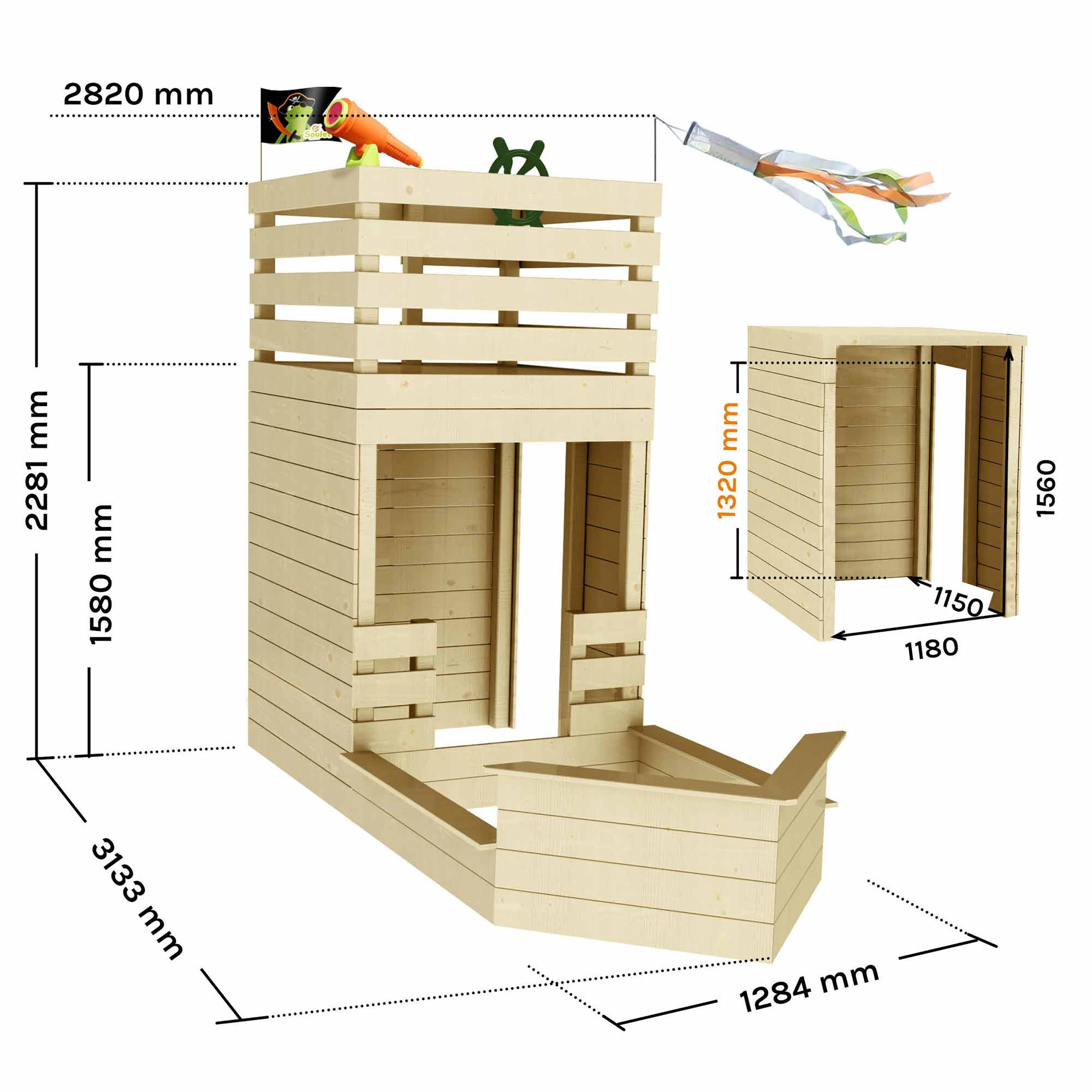 Cabane en bois avec bac à sable bateau pour enfants PIRATE