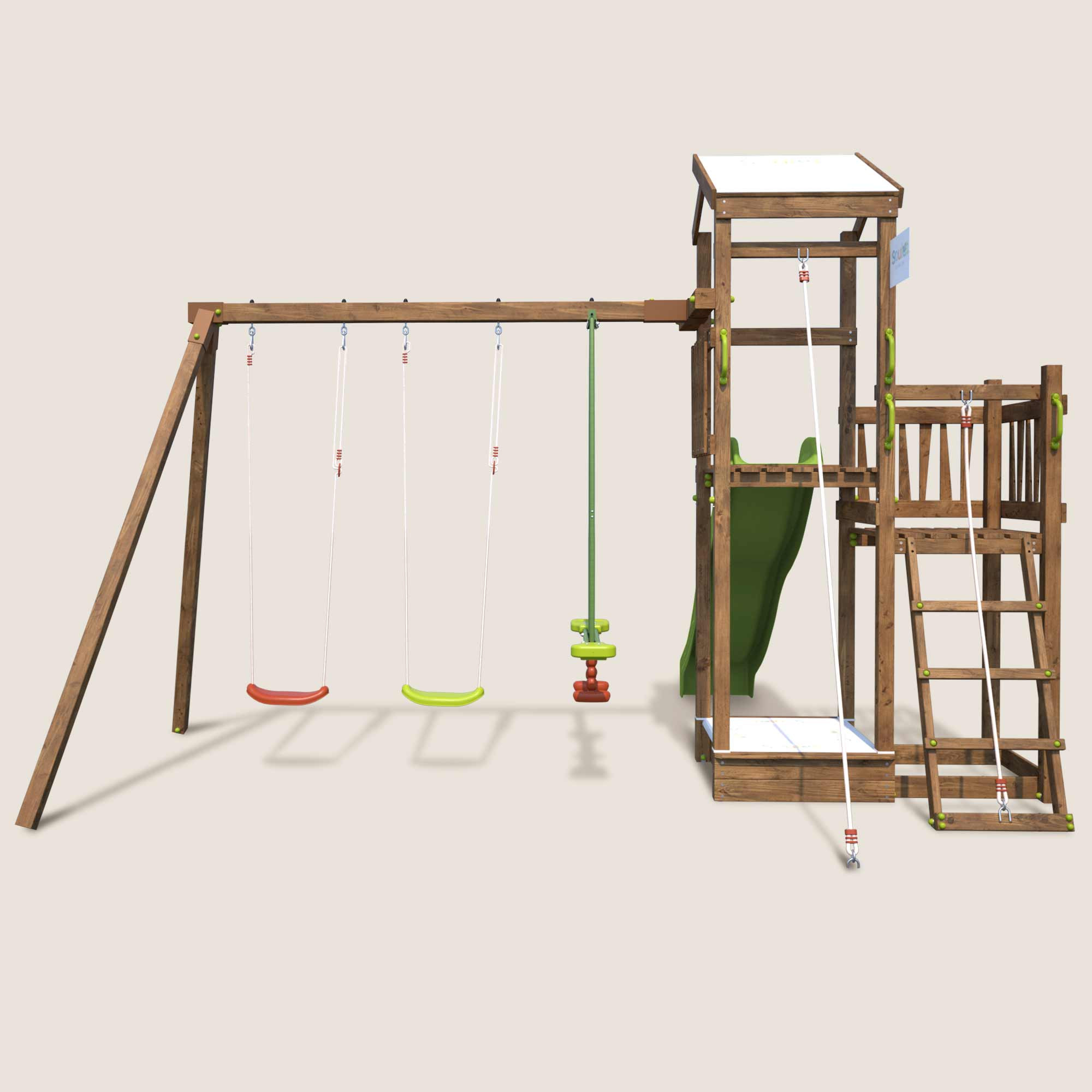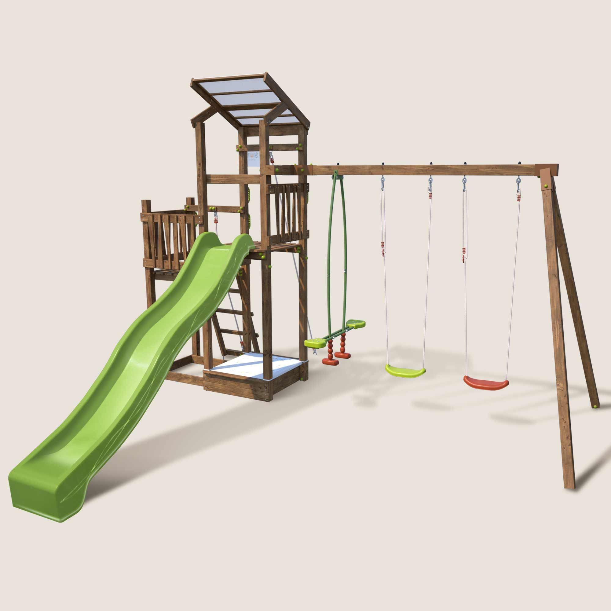 Zona de juegos infantiles con 2 torres, columpios y arenero - FUNNY Swing 150
