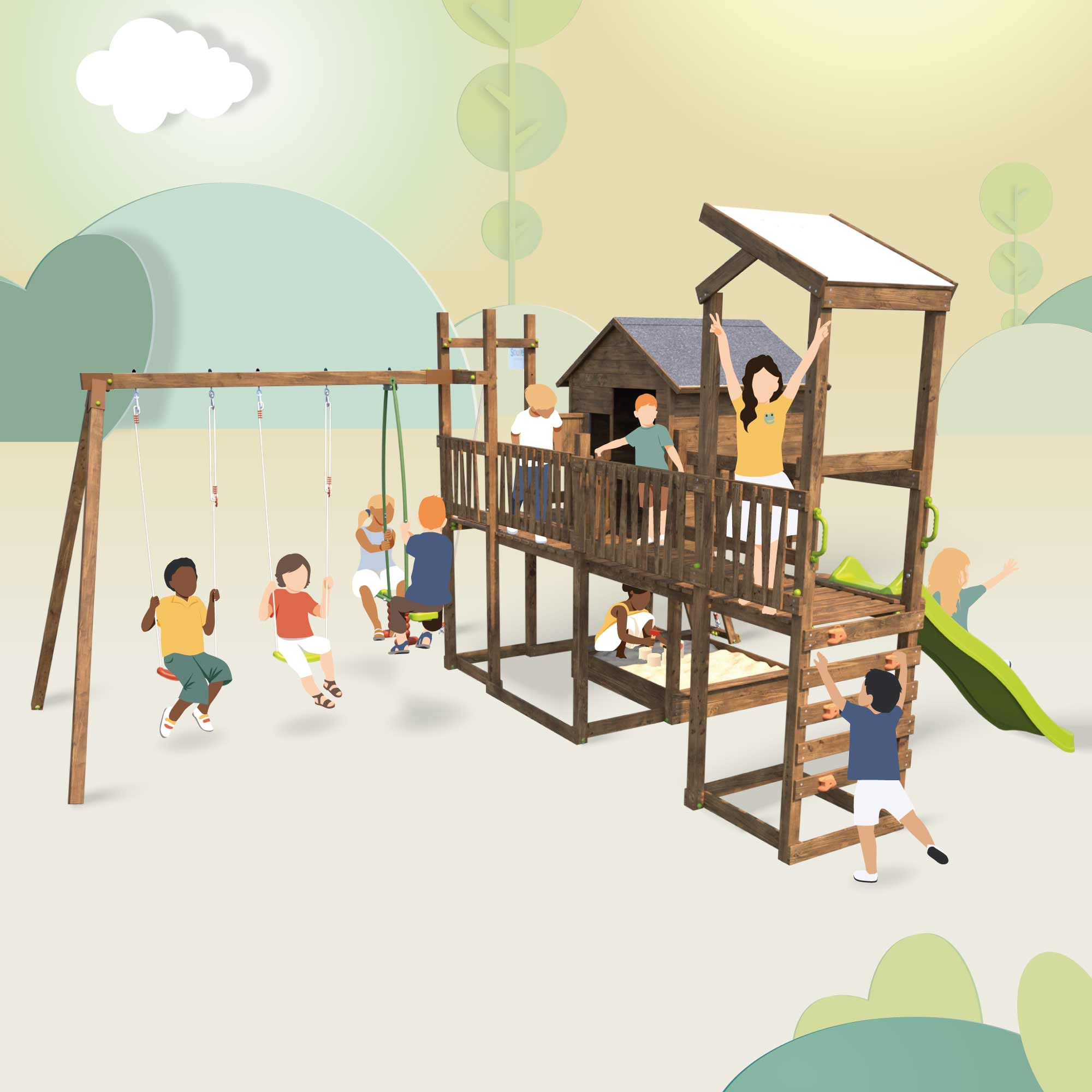 - Durabilidad: Fabricada con madera tratada a presión de clase 4, esta área de juegos XXL está diseñada para durar.