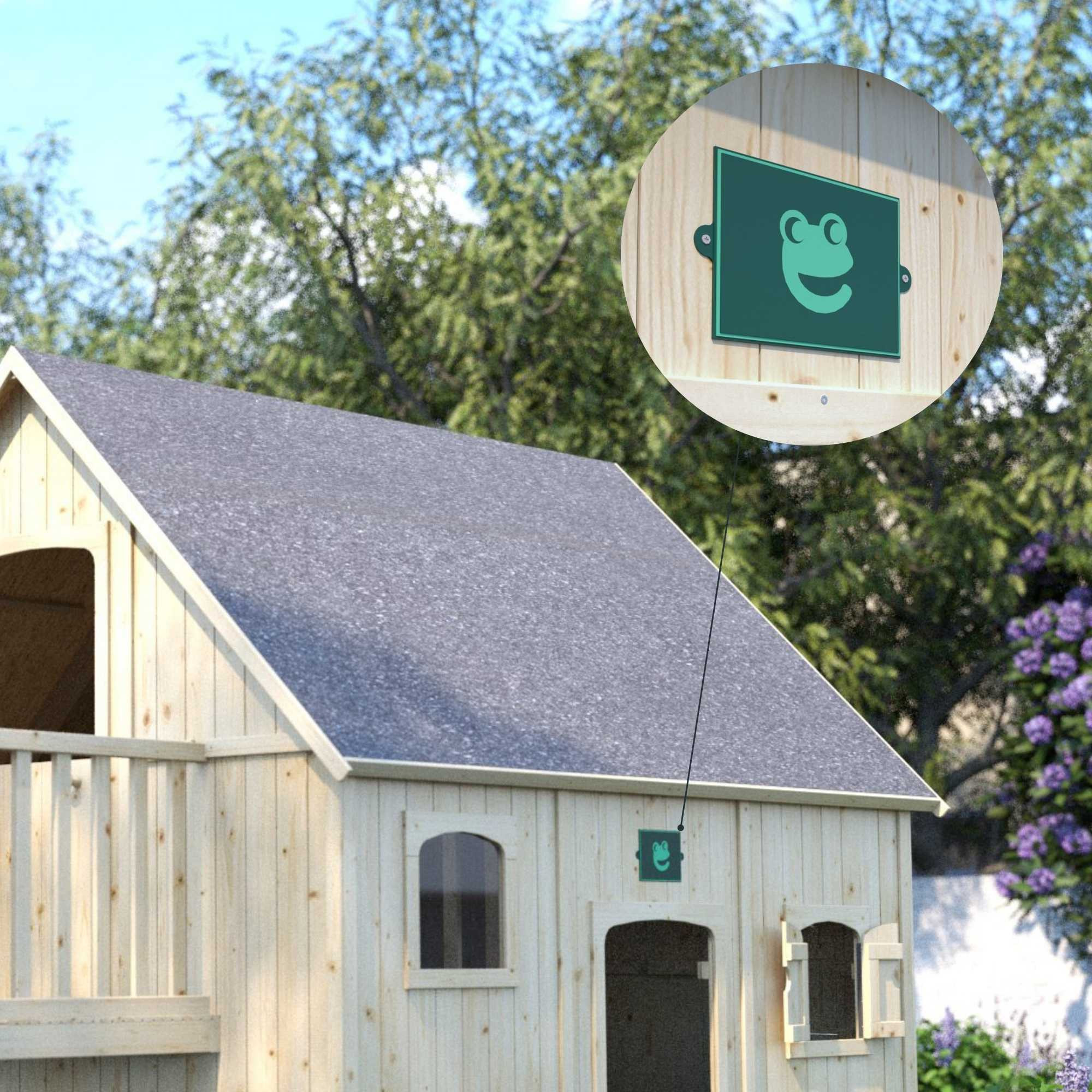 El techo inclinado de la casa de juegos no solo es estético, sino también práctico, ya que permite una mejor evacuación del agua de lluvia y garantiza una larga durabilidad.