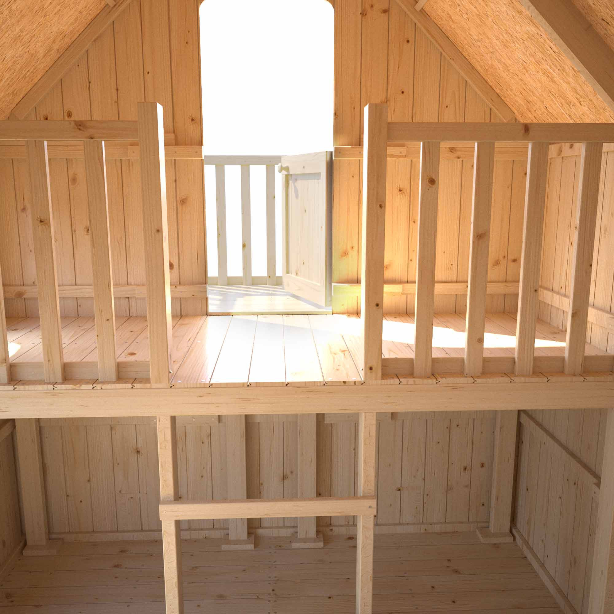 Diseñada para albergar hasta 8 niños de 3 a 12 años, esta espaciosa casa de juegos cuenta con una planta superior accesible por escalera, un balcón y un entrepiso con barandillas para garantizar la seguridad de los pequeños aventureros. Además de su generoso espacio interior de 4,13 m² (221 x 187 cm), la Casa de Juegos Duplex también ofrece zonas adicionales: el entrepiso, que añade 1,46 m², y el balcón, de 0,78 m², para ofrecer aún más espacio para jugar e imaginar.