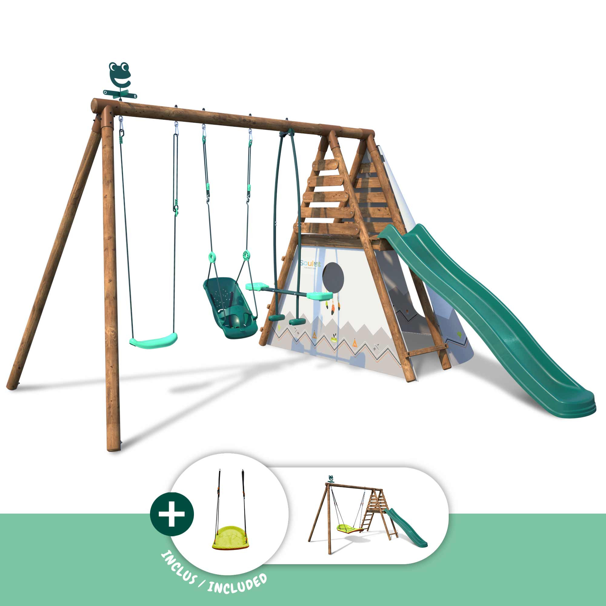 Este juego adicional, incluido en este modelo, permite que dos niños se columpien a la vez, ¡como si navegaran sobre las olas! Un juego único que amplía la diversión del exterior.