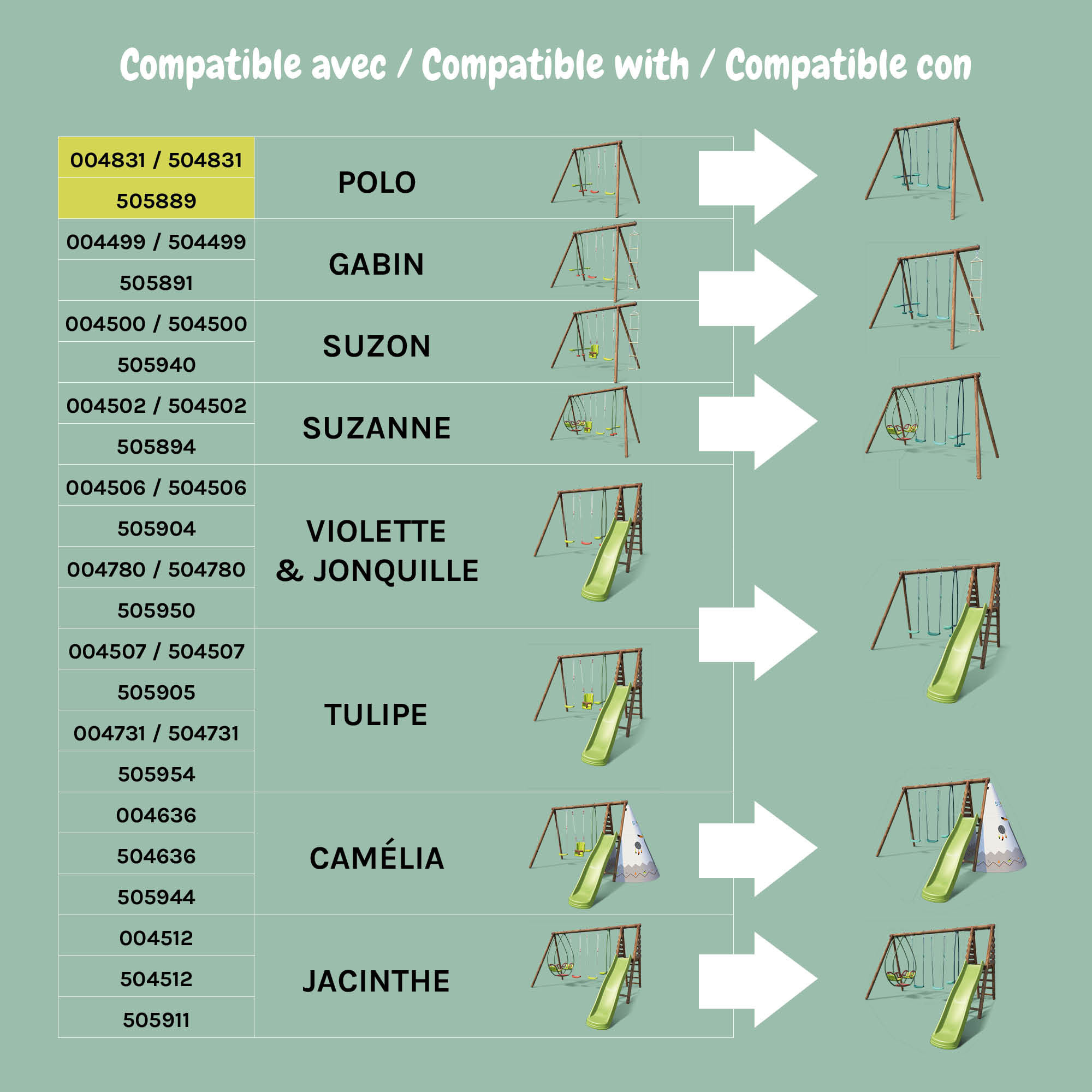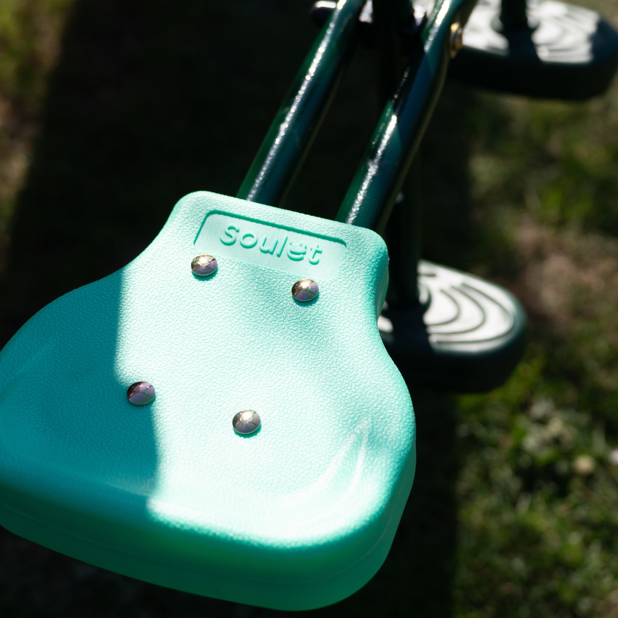 Los tonos verde menta y verde oscuro de los columpios aportan un toque natural y relajante. Estos colores se integran armoniosamente en tu jardín para un aspecto estético y discreto.