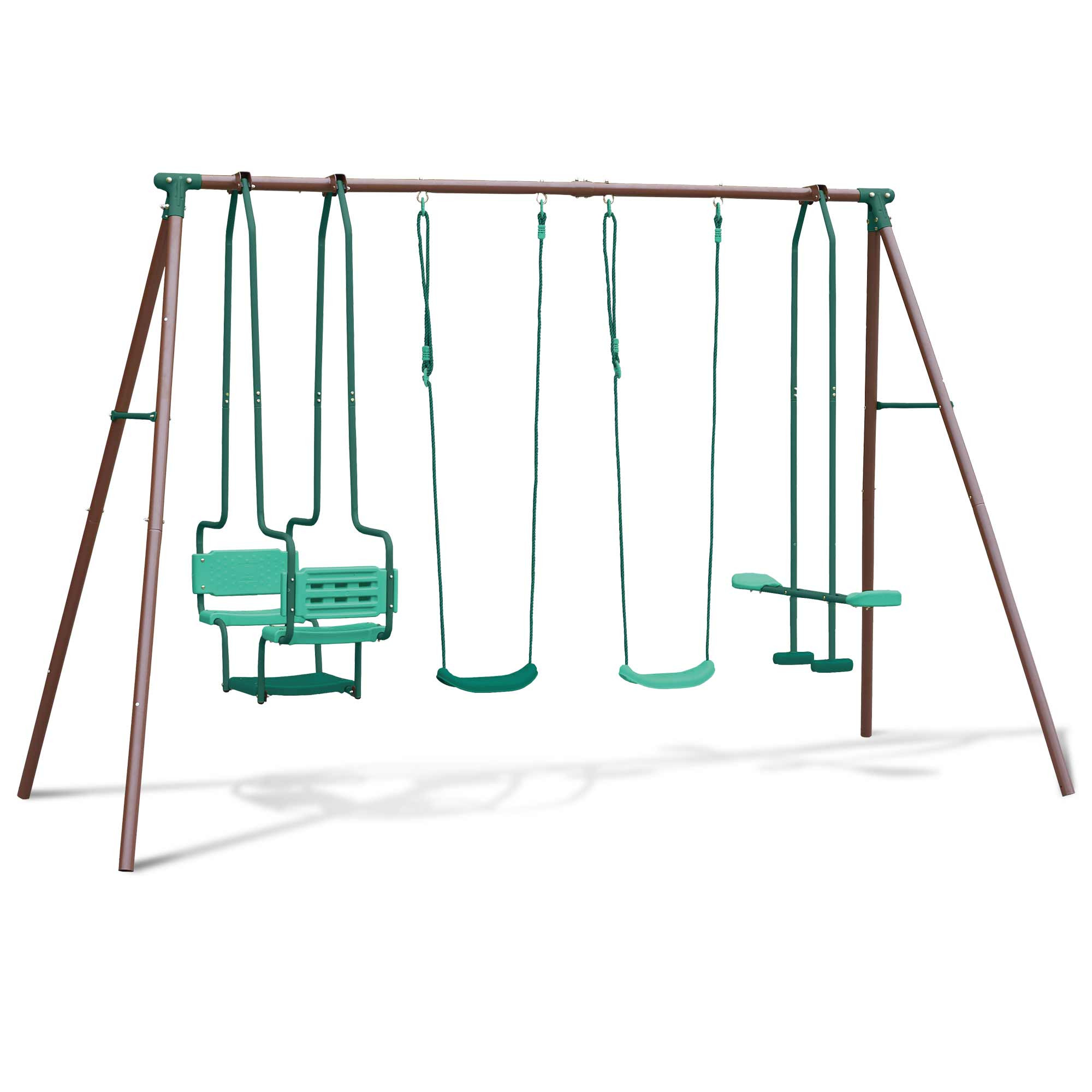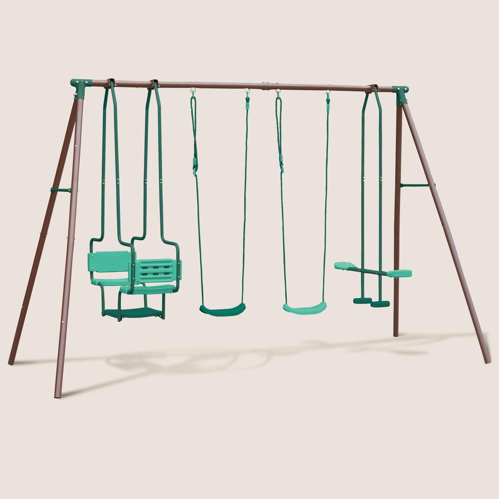 Columpio de acero con 4 accesorios marrones y verdes - Malo