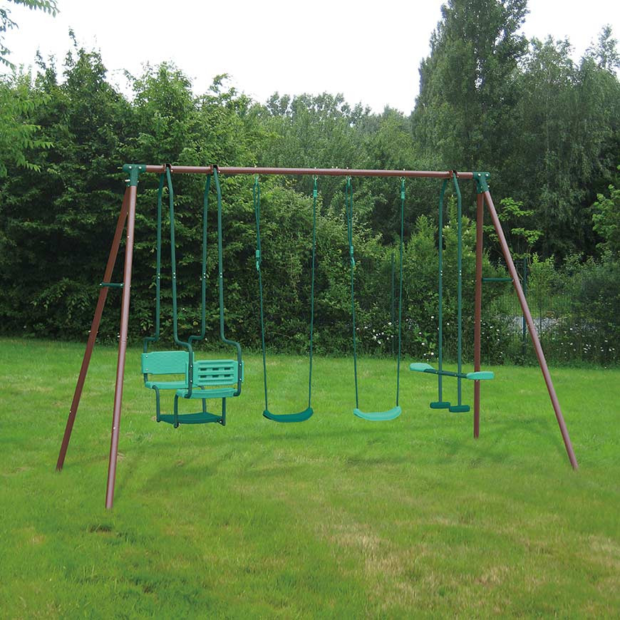 Un columpio de acero galvanizado duradero y sin mantenimiento
