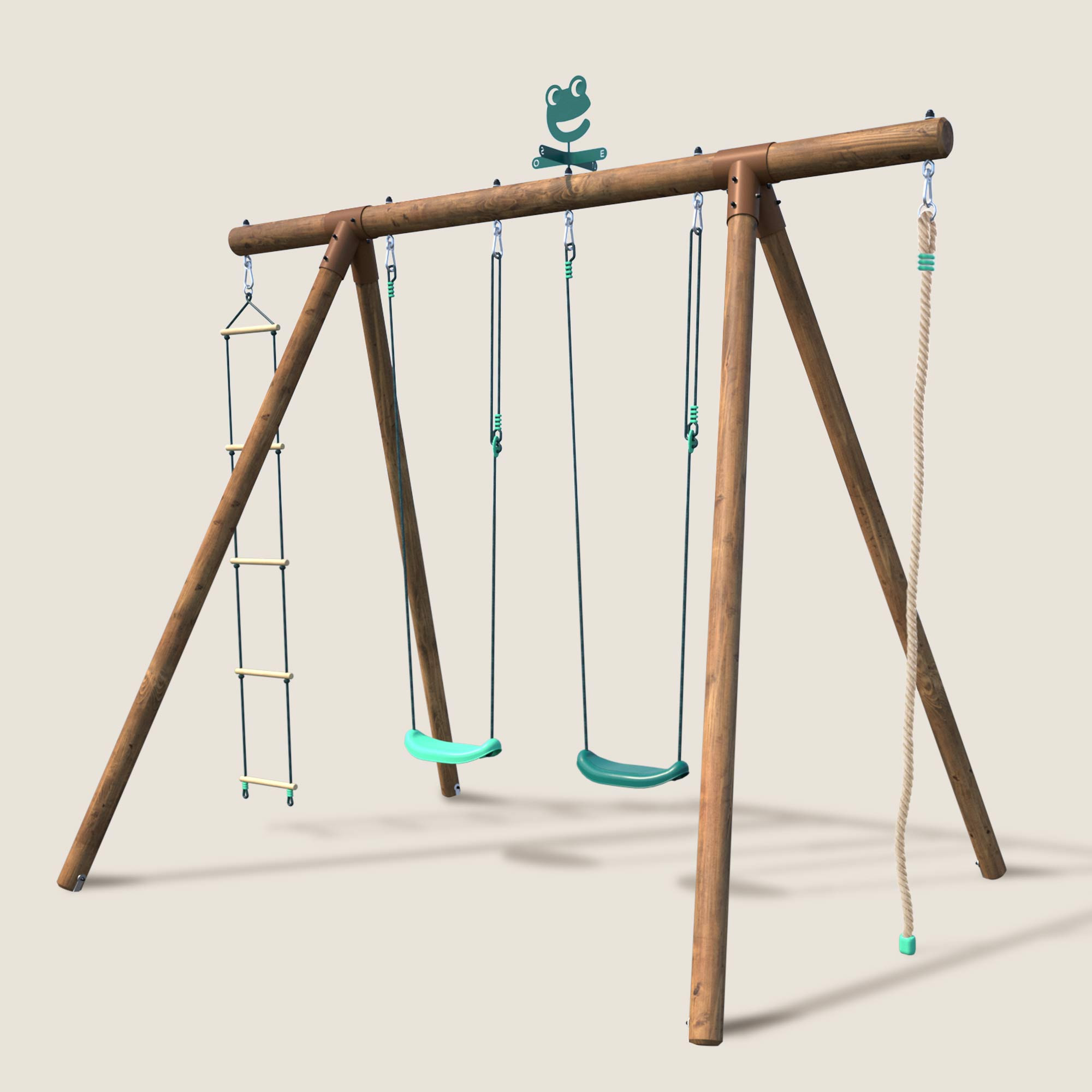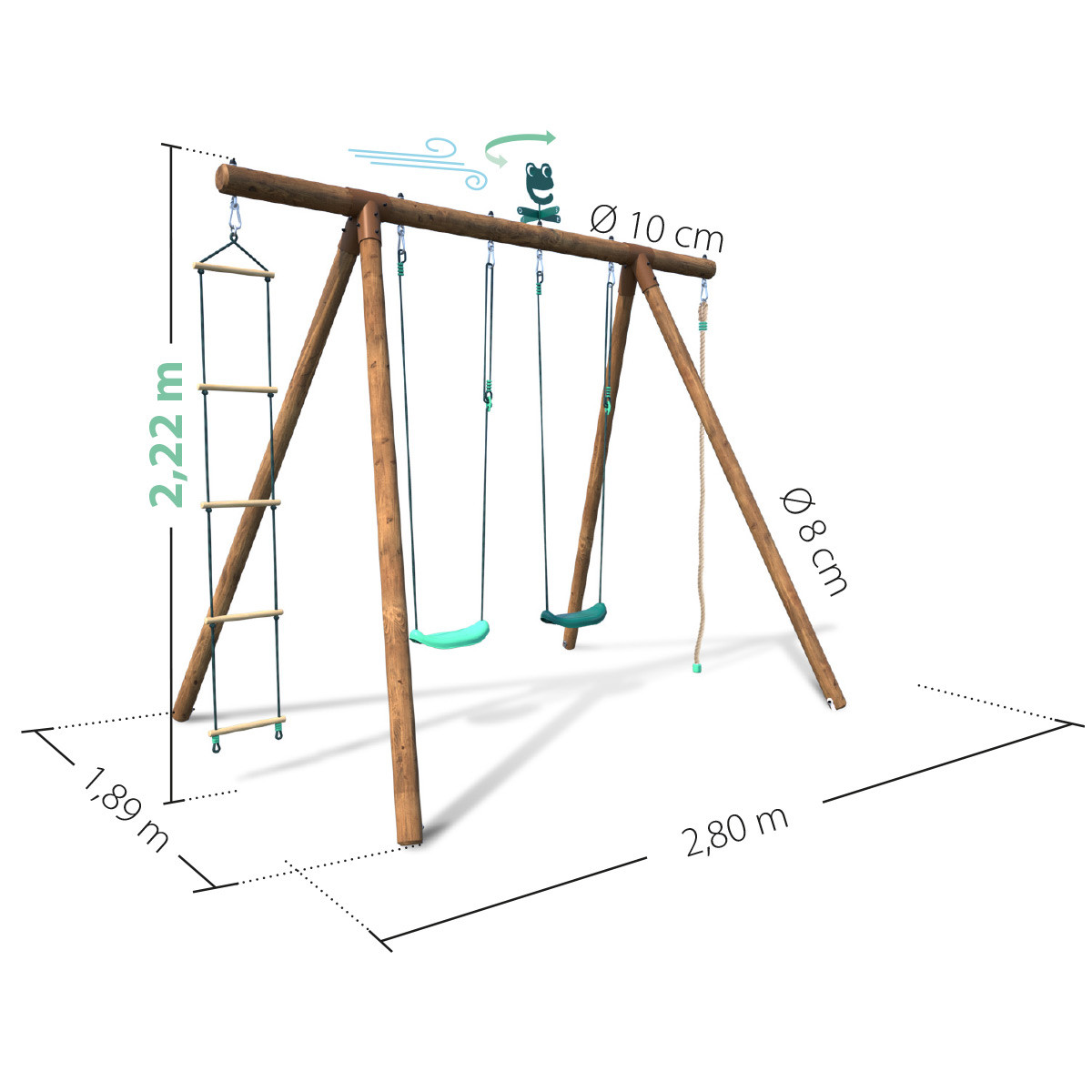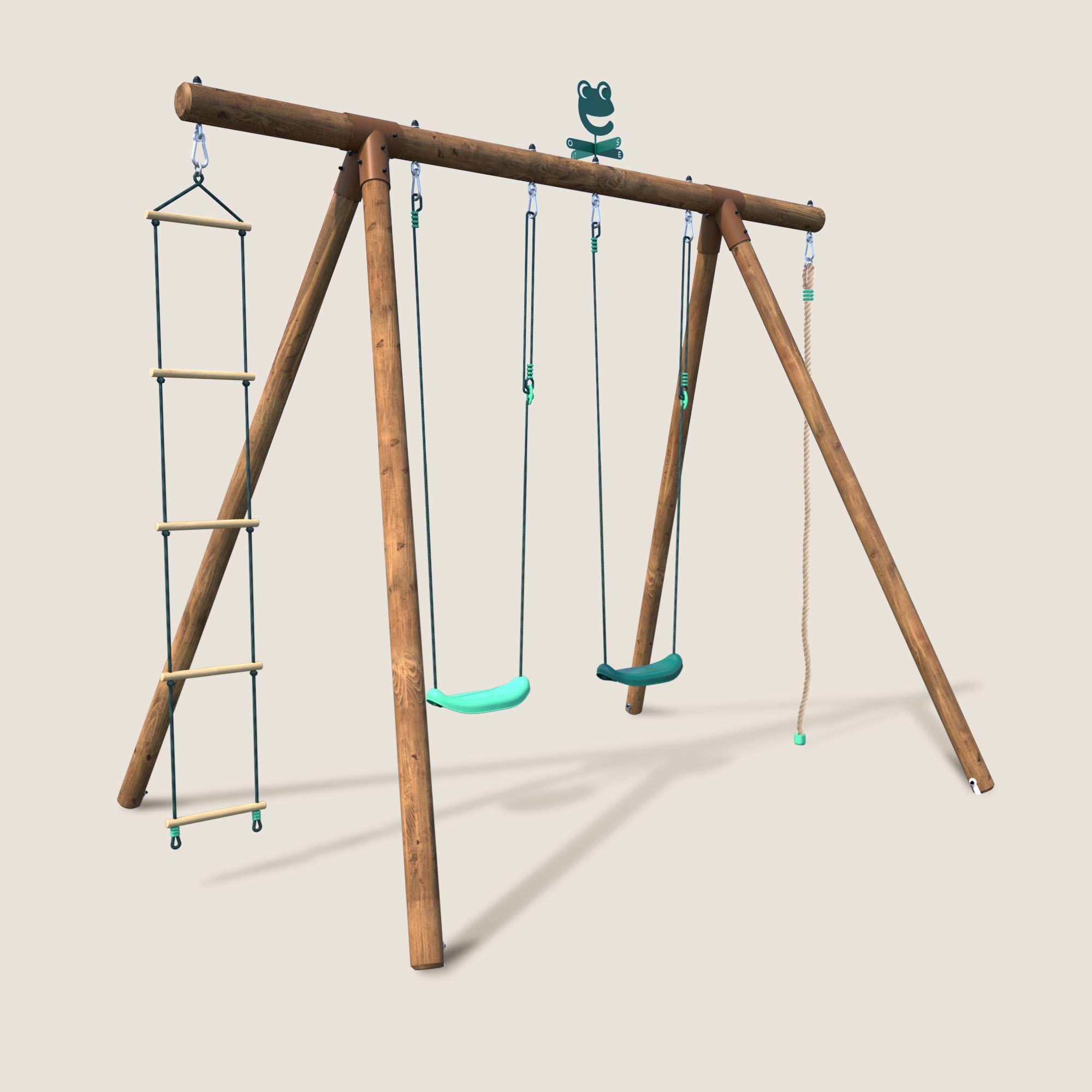 Columpio de madera tratada con 3 elementos de juego y escalera - Juliette