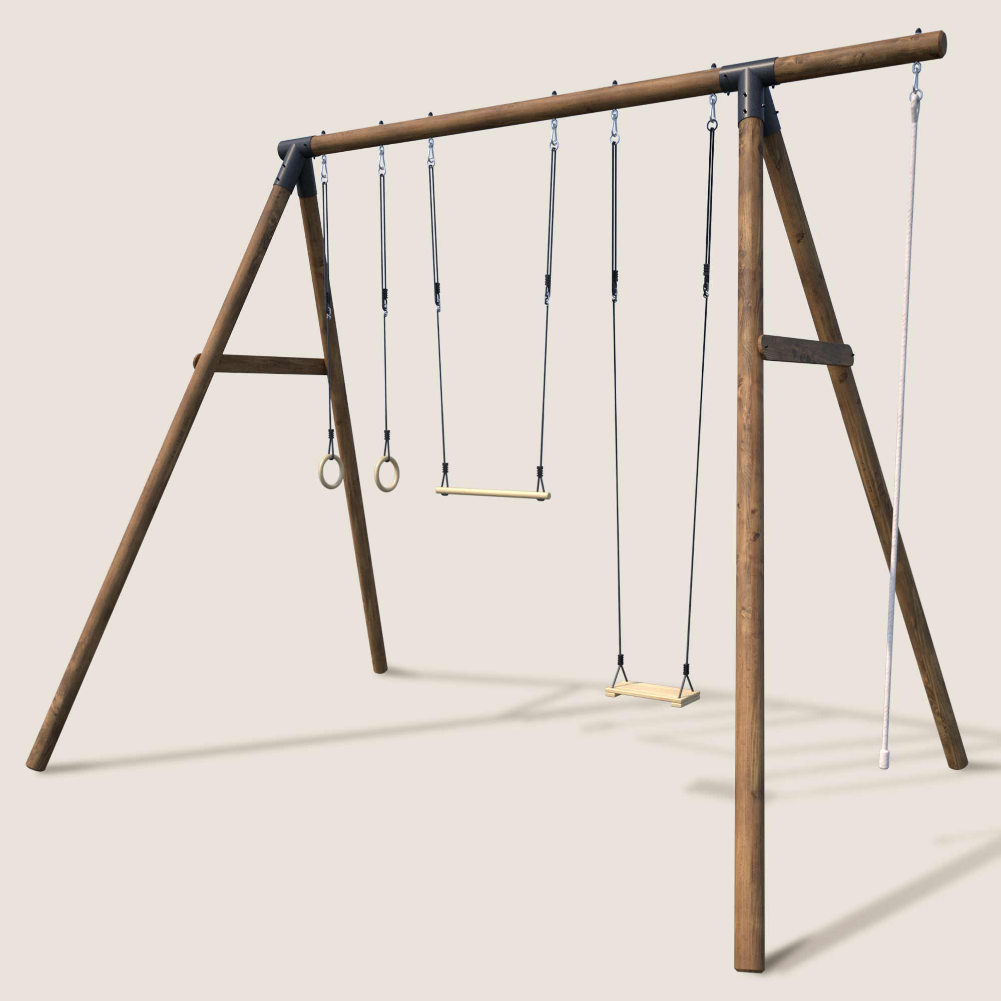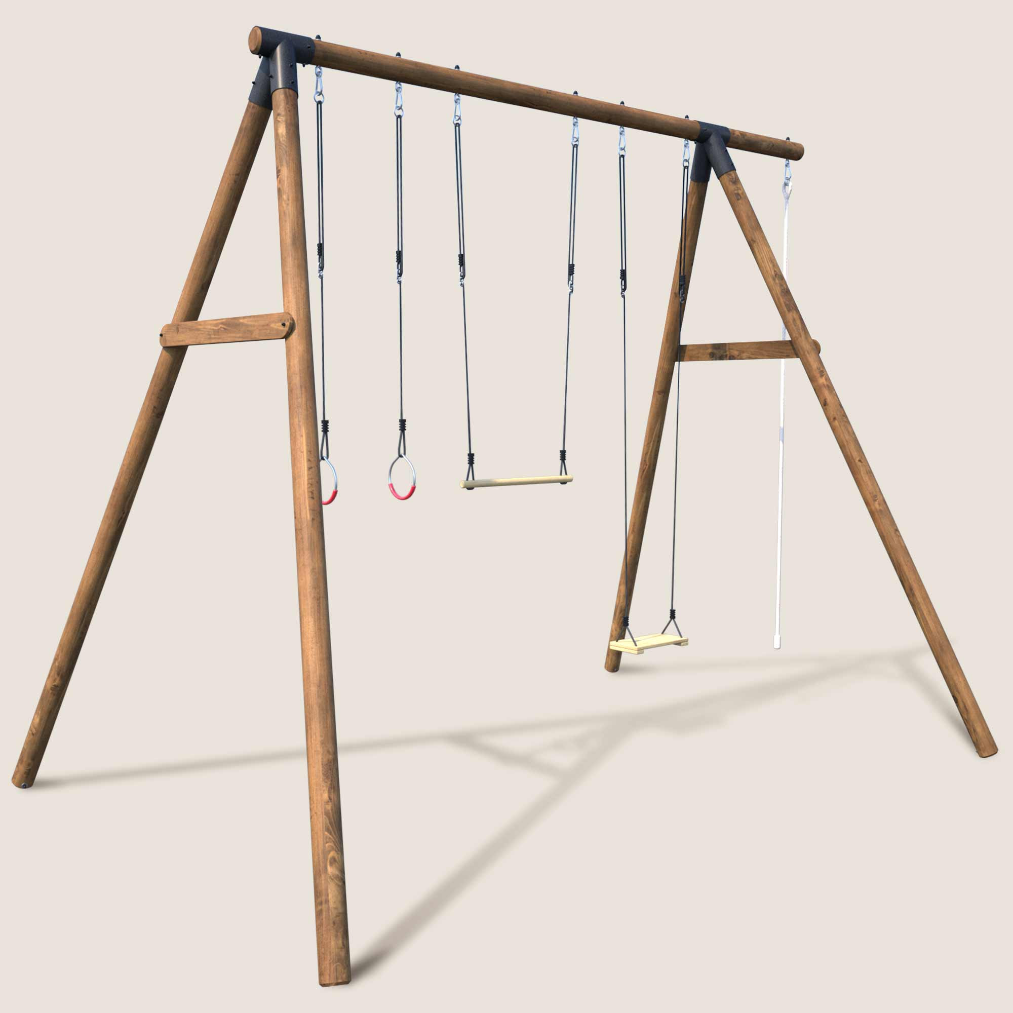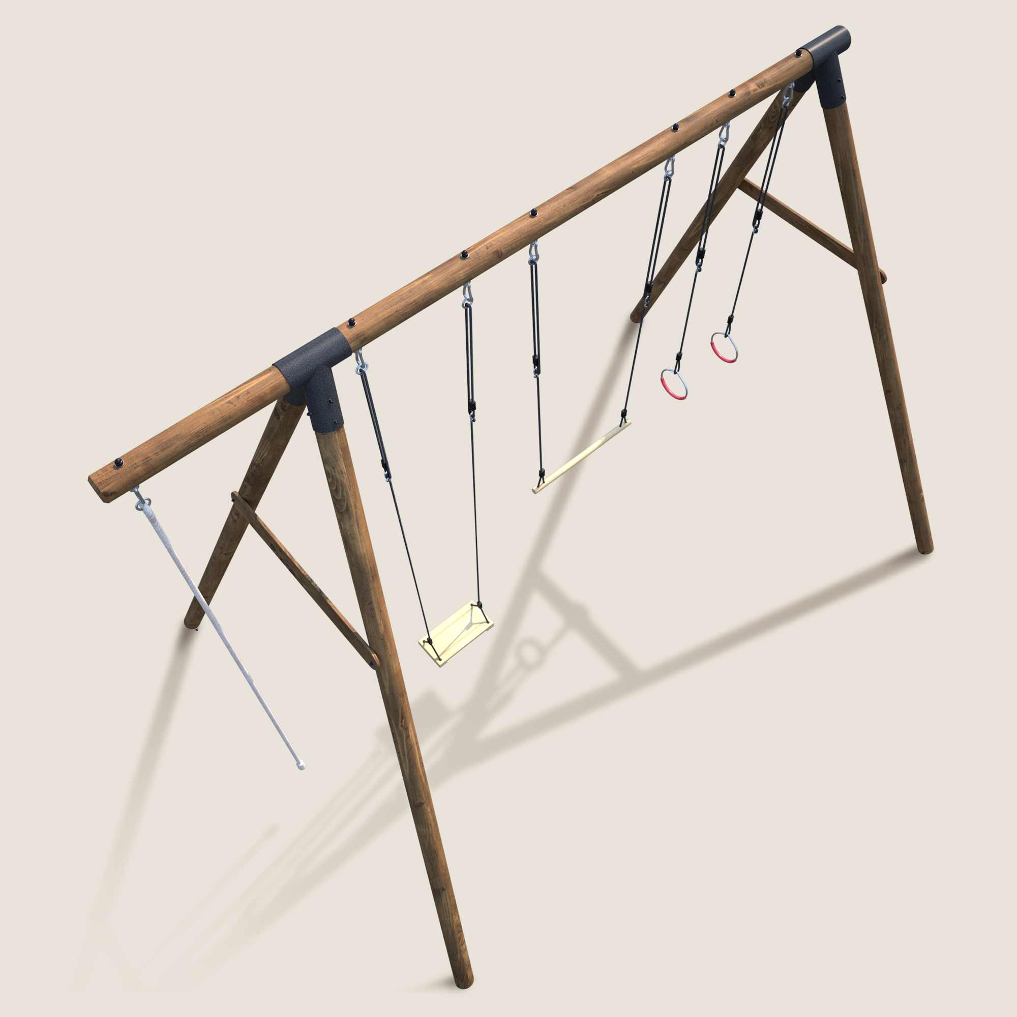 El pórtico Galdar está diseñado para perdurar. Fabricado en madera tratada en autoclave clase 4, es especialmente resistente a la intemperie, garantizando una larga vida útil incluso tras años de uso exterior. Su diseño robusto permite soportar juegos intensos y frecuentes, haciendo de este pórtico una opción ideal para adolescentes.