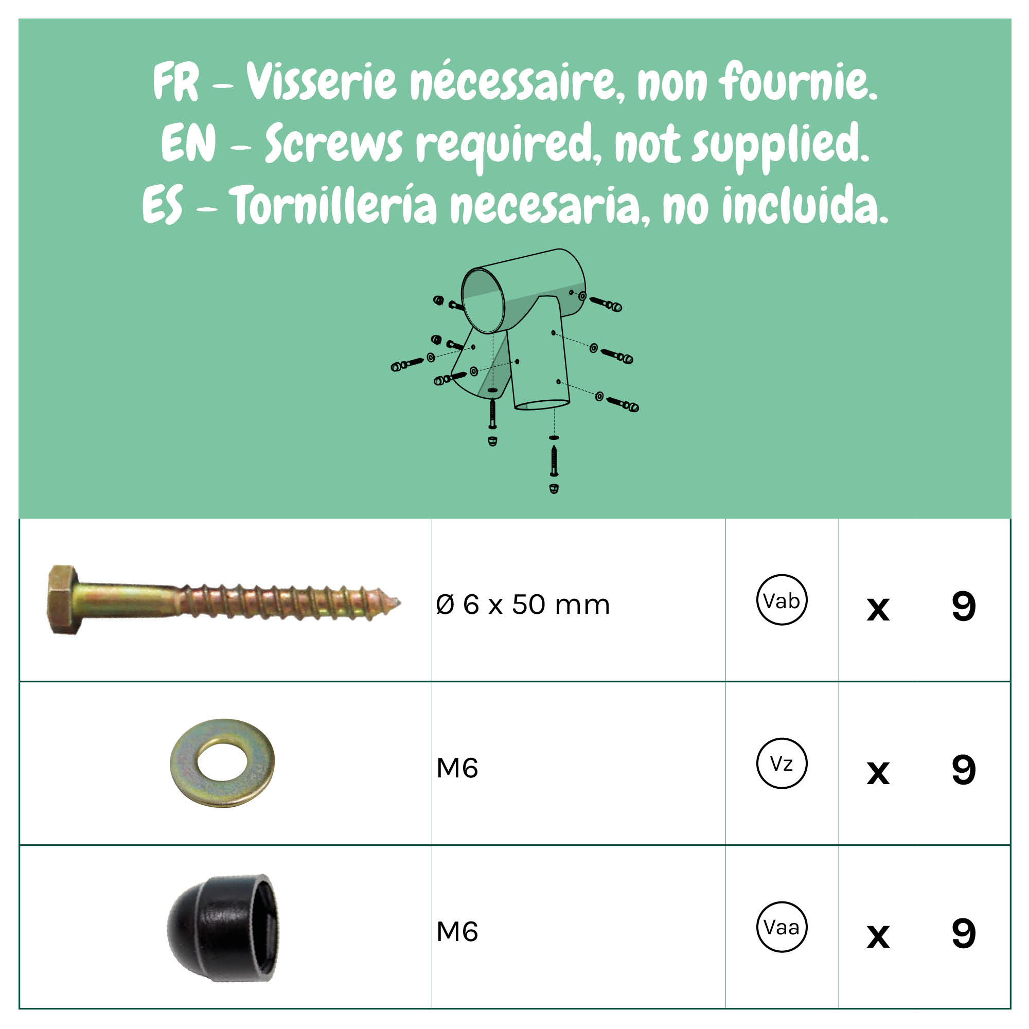 Pour renforcer la sécurité et l’esthétique, la visserie (non incluse, disponible séparément) associée possède des cache-écrous noirs, qui offrent un look sobre, soigné et discret.