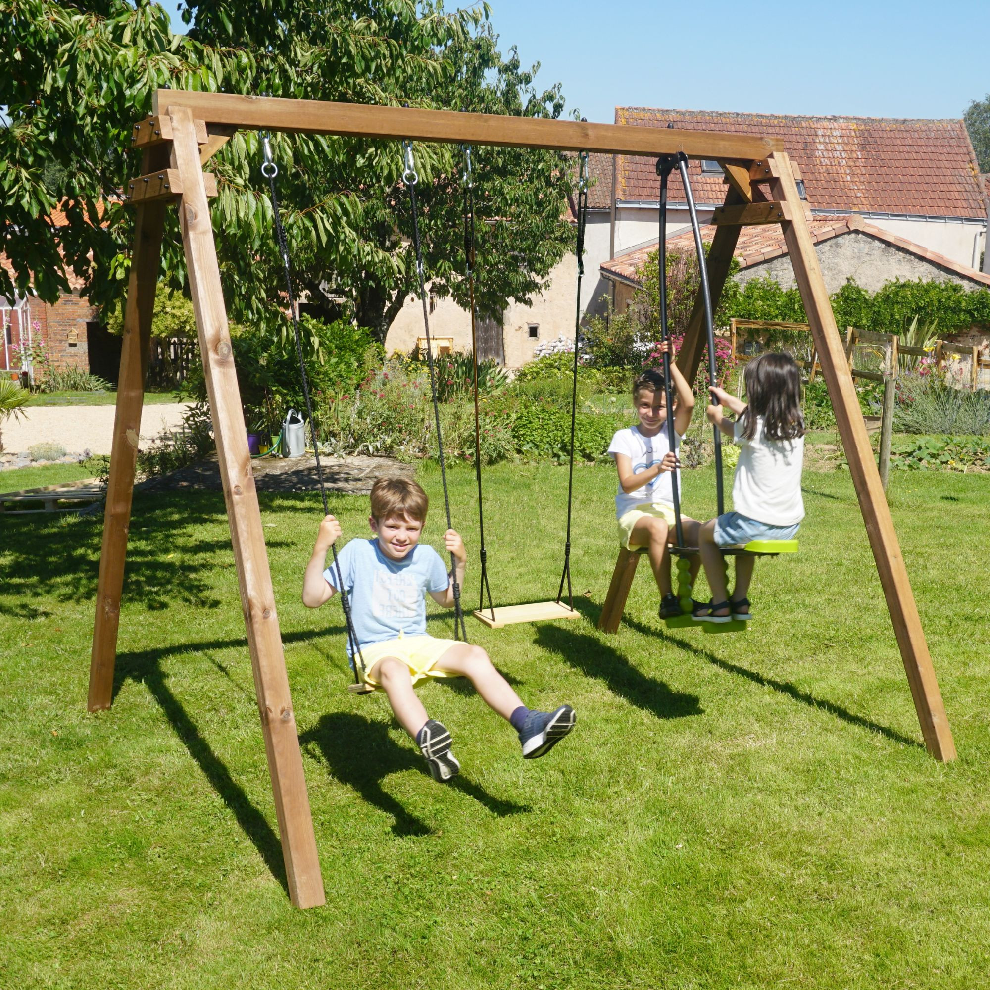 Portique balançoire en bois 3 agrès avec face à face GAUTIER