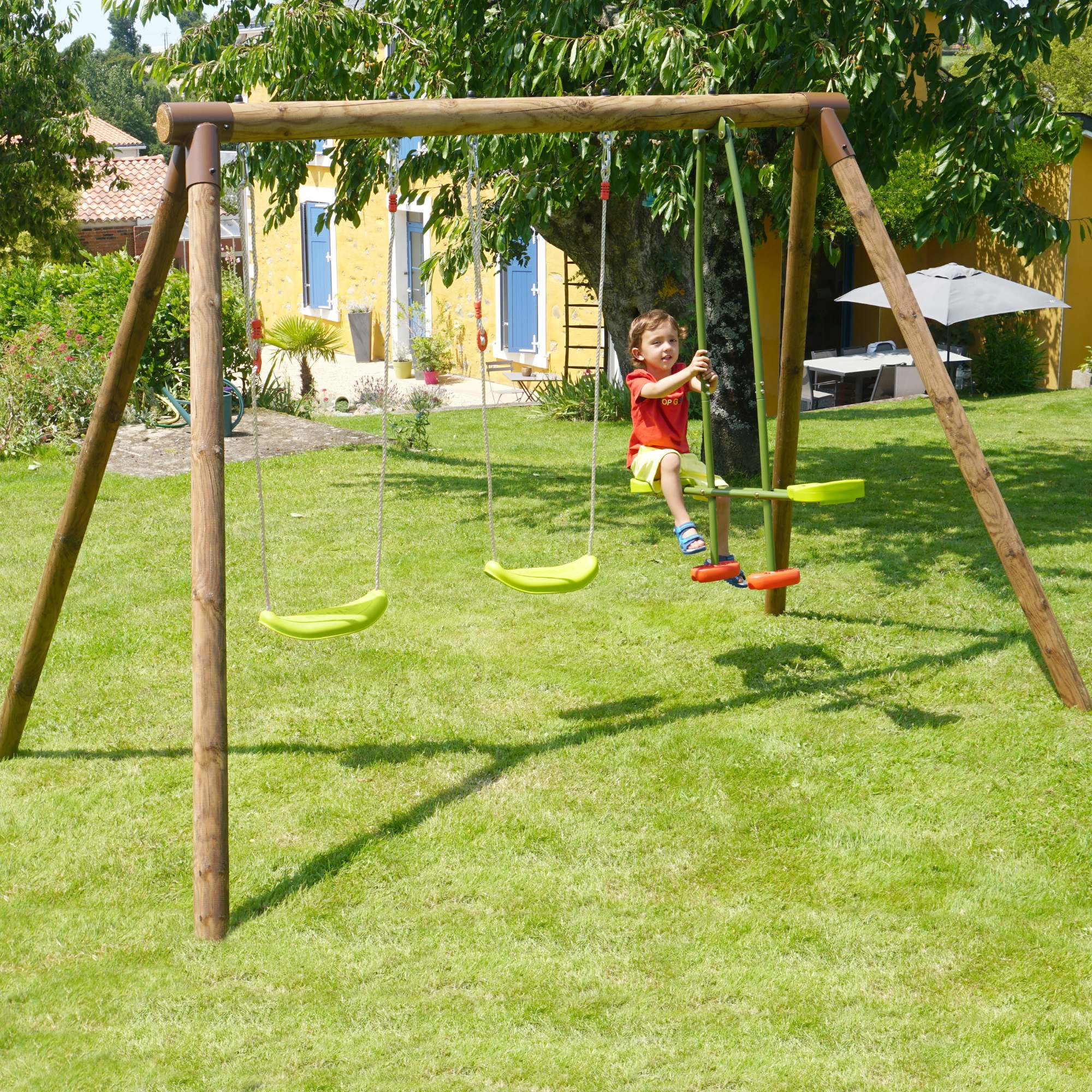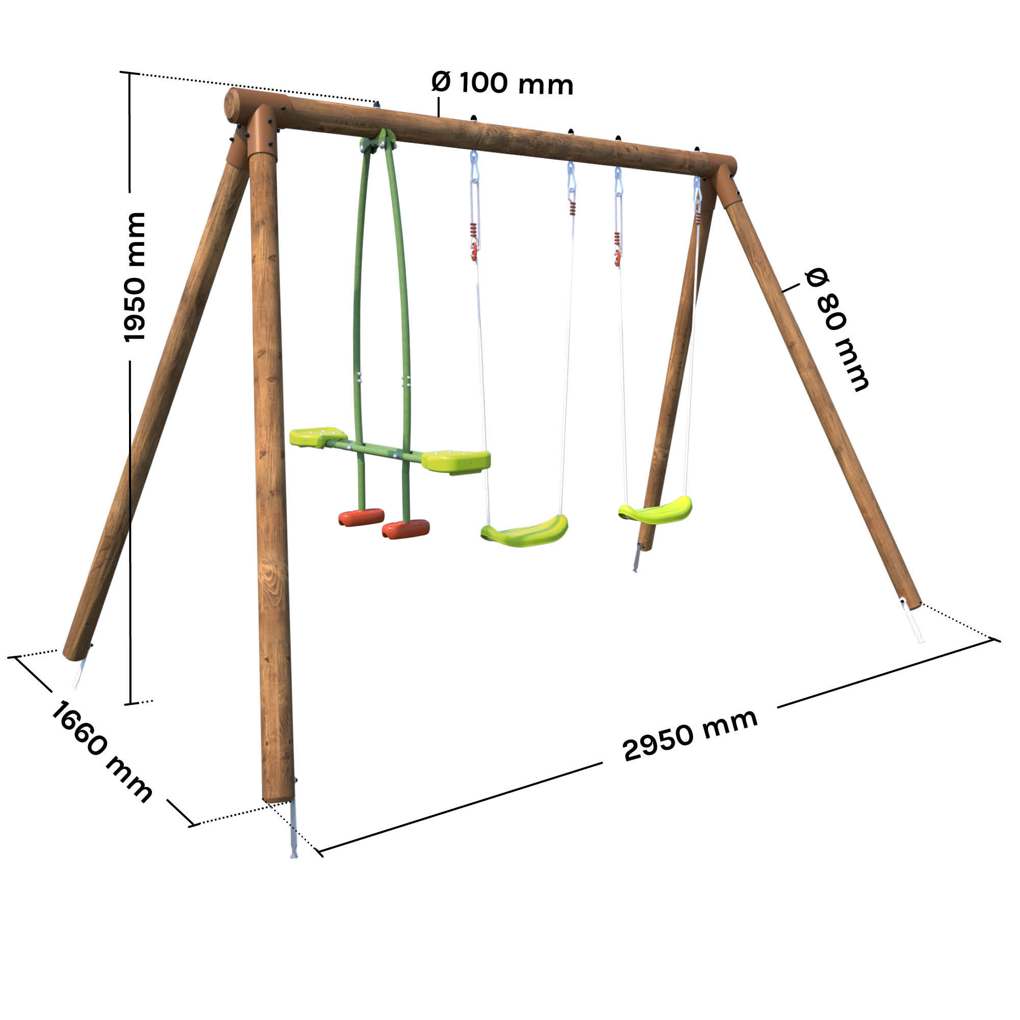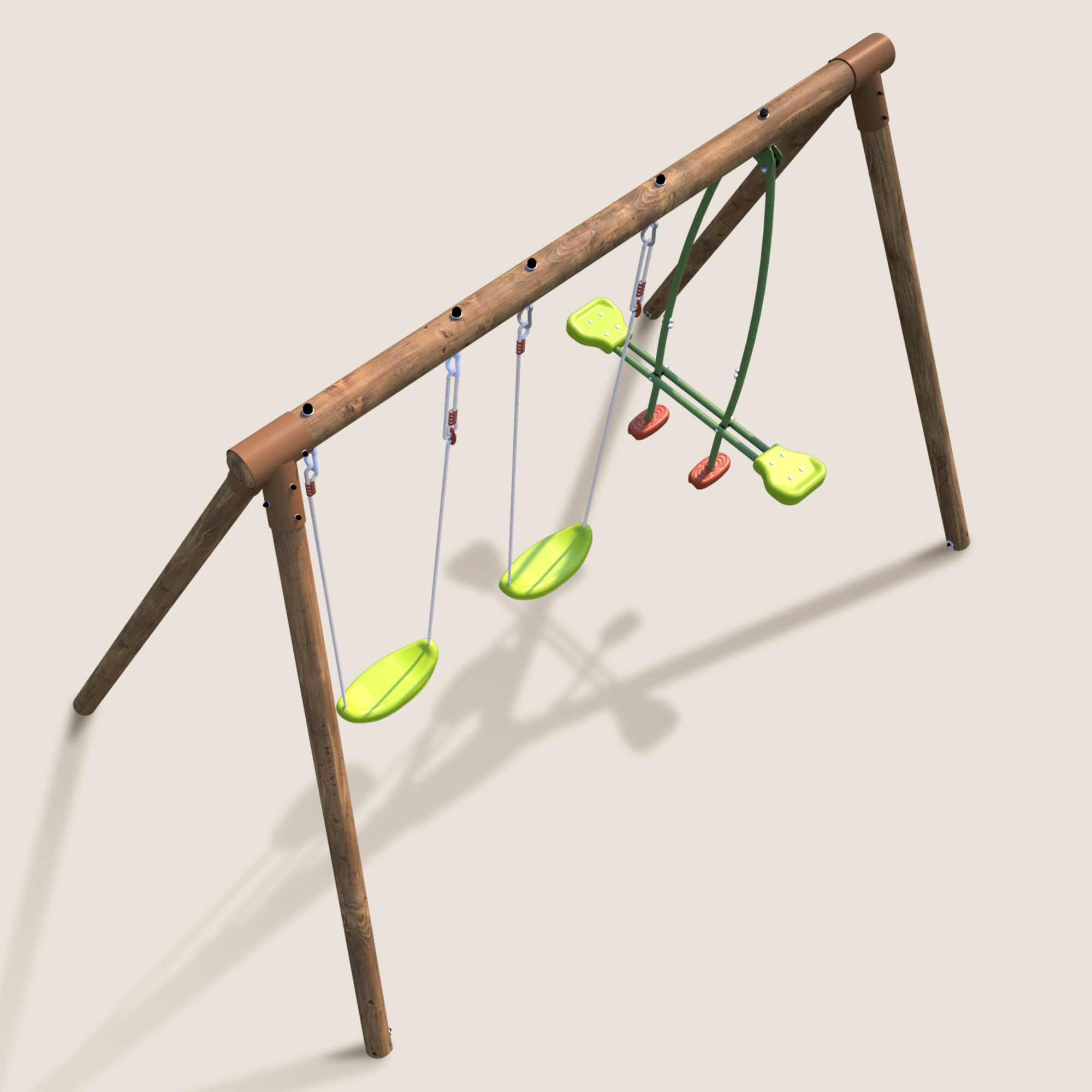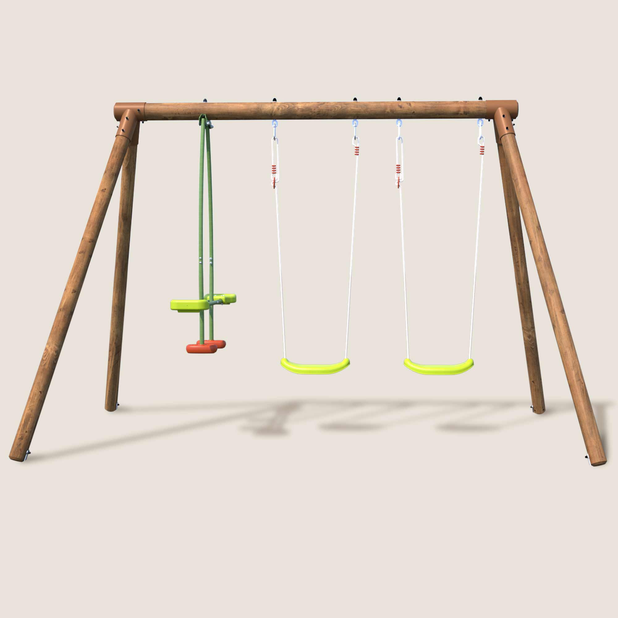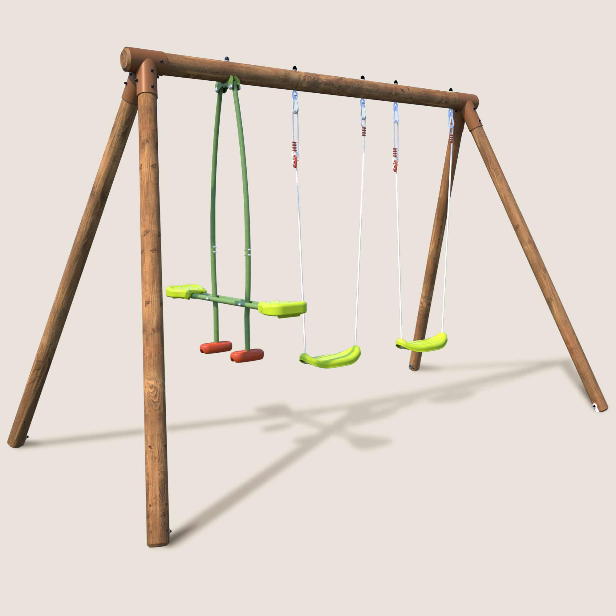 Portique balançoire en bois 3 agrès avec face à face PAKKO