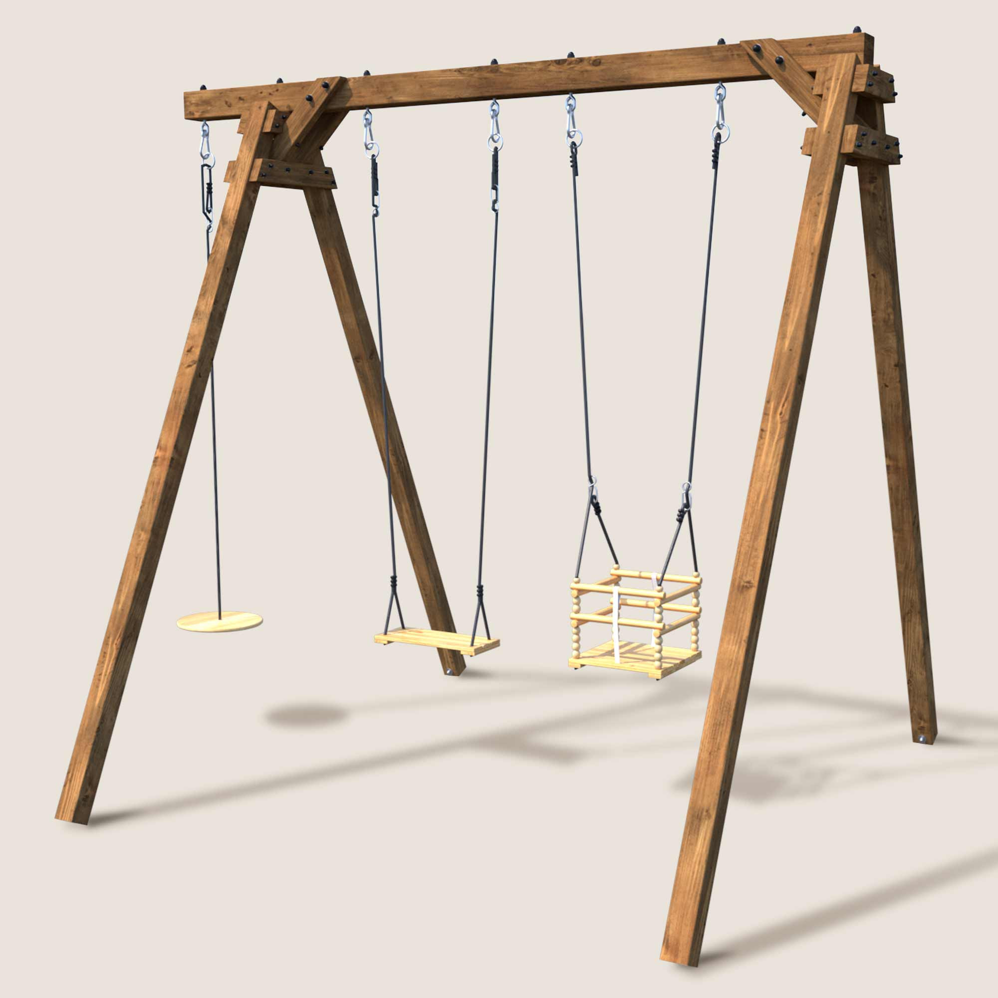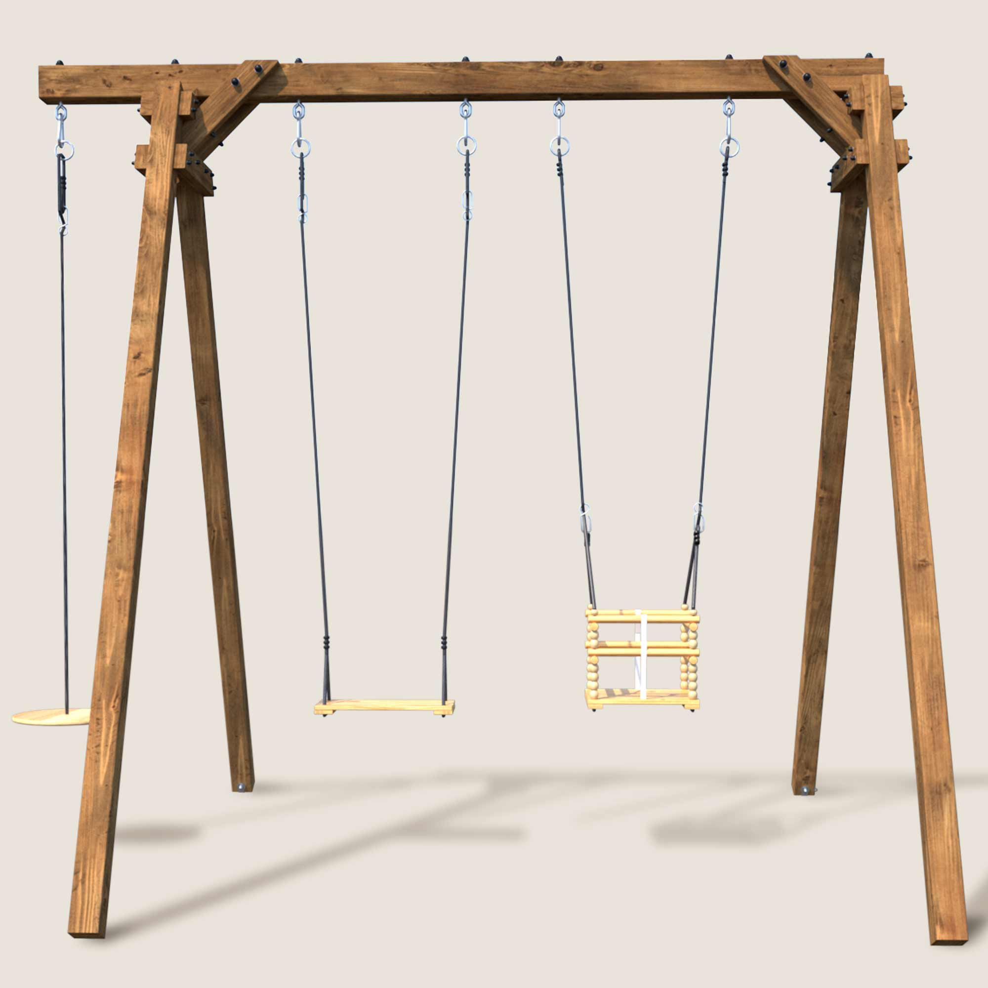 Portique balançoire en bois 3 agrès avec siège bébé et corde disque ULYSSE