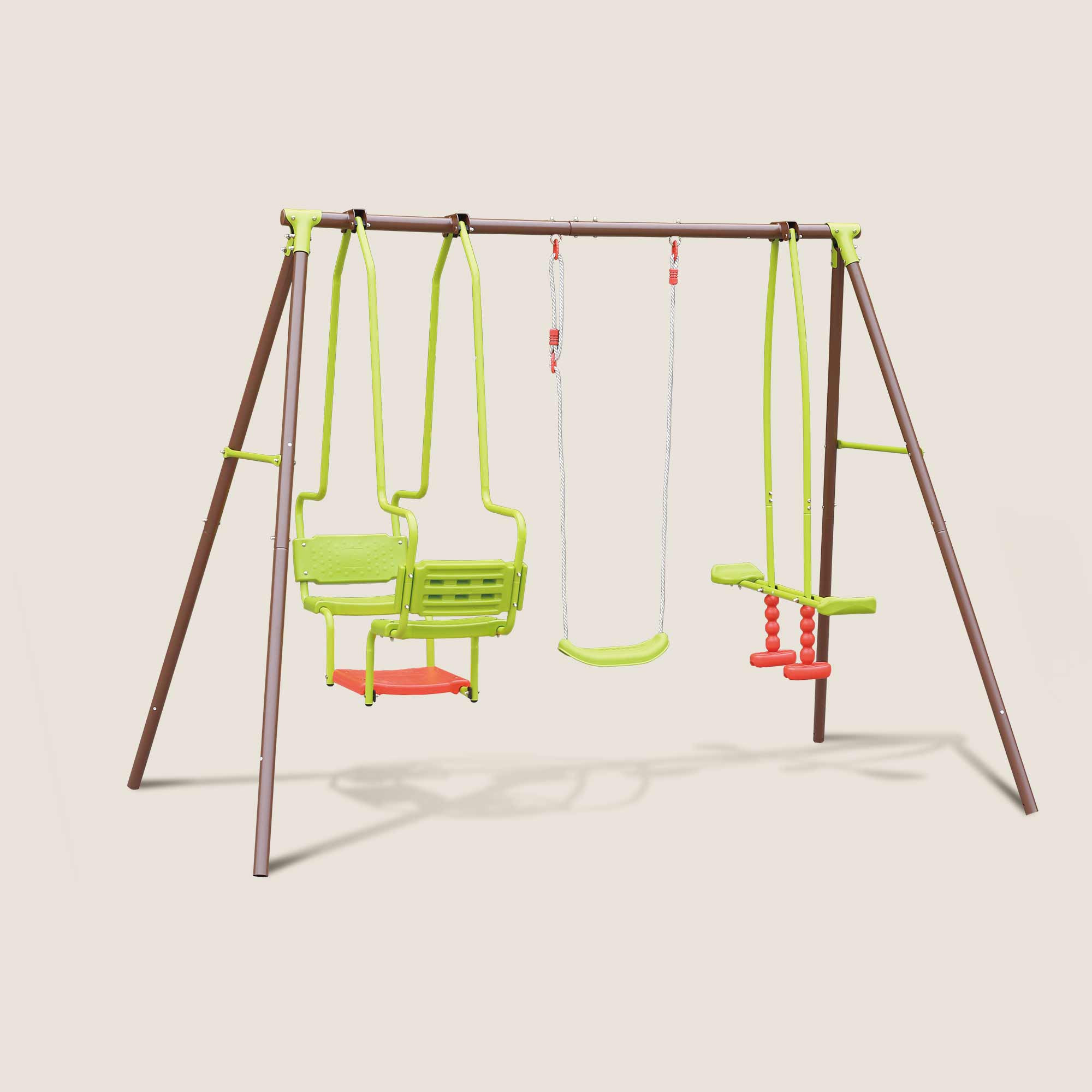 Portique balançoire en métal 4 agrès avec face à face MALO MENTHE